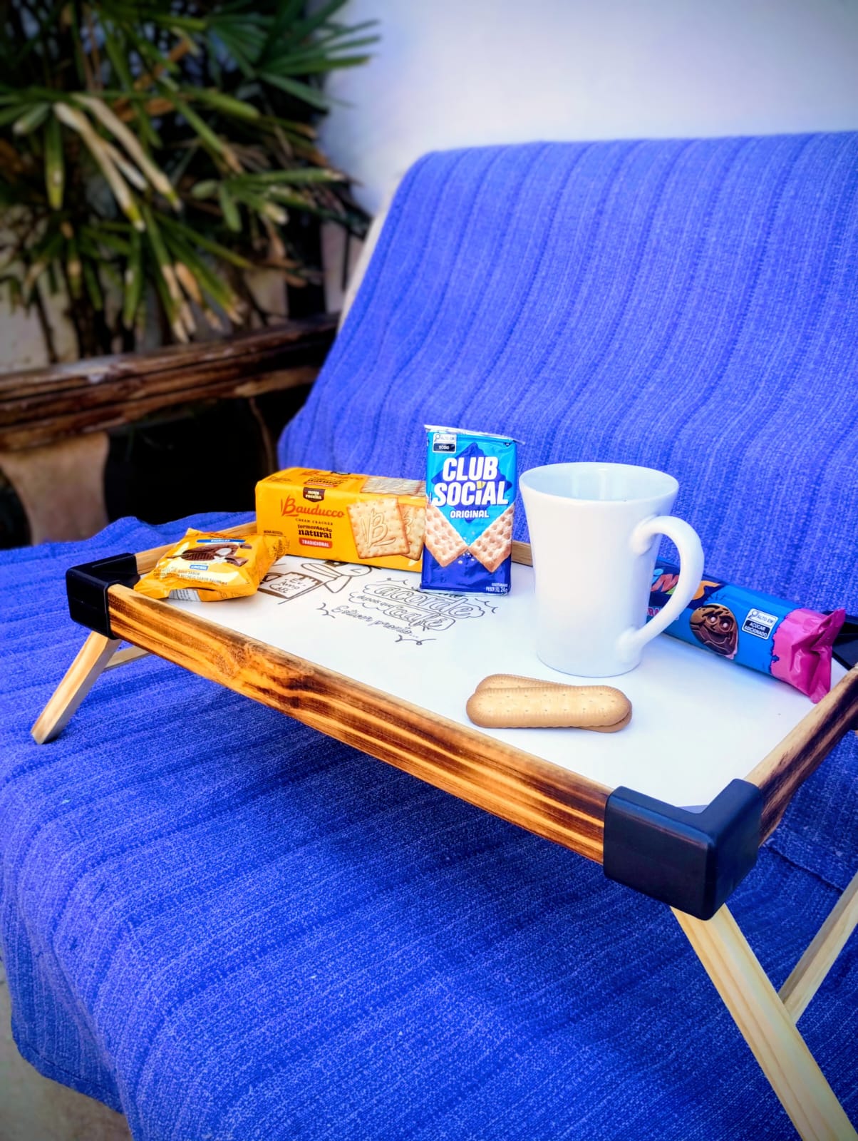 Versátil: pode ser usada como bandeja para café da manhã na cama, petiscos, mesa de apoio ou item decorativo
